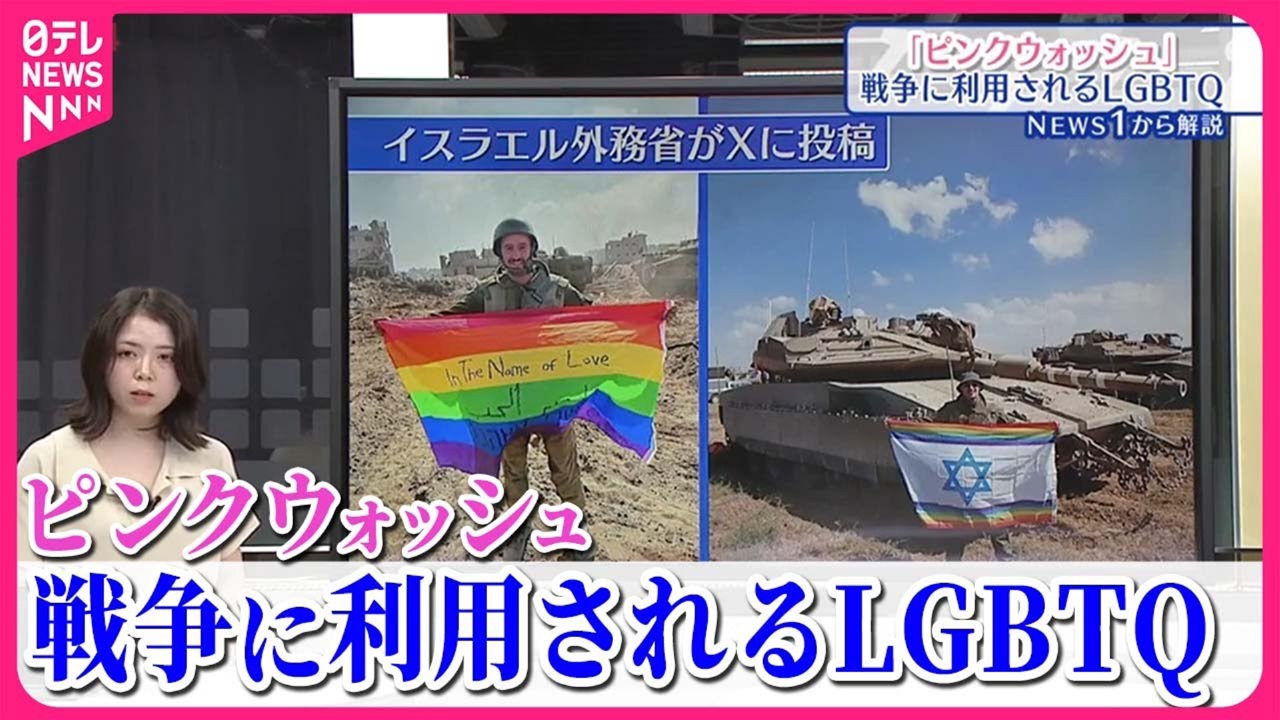 イスラエルによるパレスチナ自治区ガザ地区への攻撃が続く中、イスラエル軍の兵士がLGBTQの象徴であるレインボーフラッグを掲げた写真が注目された。LGBTQを支援する姿勢を打ち出すイスラエルのイメージ戦略である「ピンクウォッシュ」をひもとく。 (2024年6月6日放送「news every.」より)