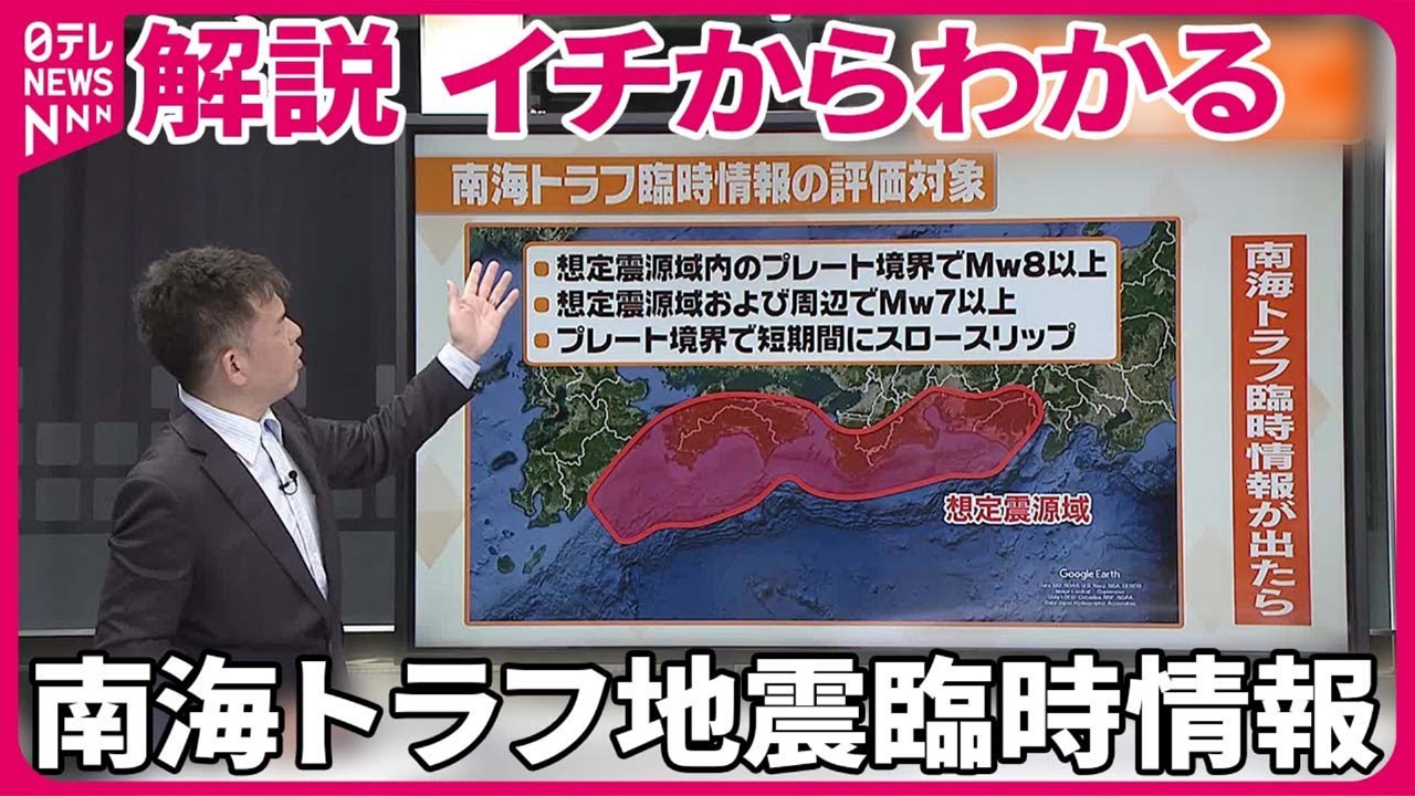 先月の豊後水道でおきた震度6弱の地震は南海トラフ巨大地震の想定震源域の中で発生しましたが、南海トラフに与える影響はないと評価されています。地震直後、話題となった「南海トラフ臨時情報」。2017年に運用が開始されましたが、これまで実際に出されたことは一度もありません。この情報が出される基準は?南海トラフ地震にどのように備えればよいのか?社会部災害担当・中濱弘道デスクが解説します。【週刊地震ニュース】(2024年5月13日放送)