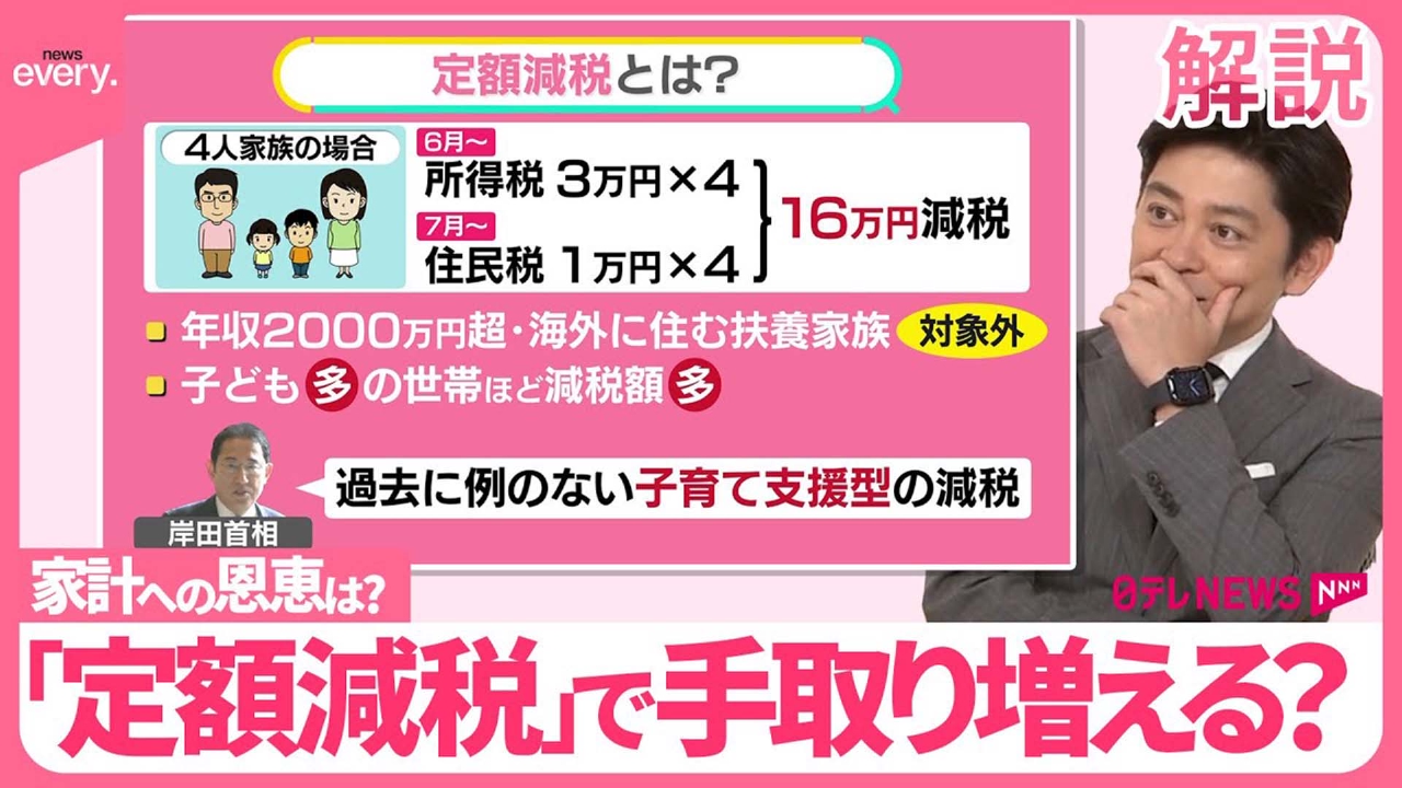 物価高が続く中、「手取り増を実感してもらいたい」と政府が狙う定額減税が6月から始まります。給与明細への減税額明記をめぐり疑問の声も上がりますが、家計に入るお金は増えます。3兆円超の予算を使う政策として、どれだけの効果が見込めるのでしょうか?(2024年5月29日放送「news every.」より)