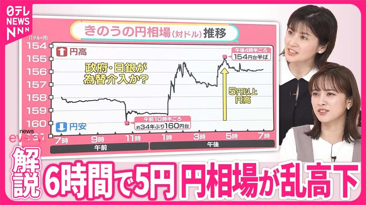 ゴールデンウイーク中の4月29日、円相場が大きく上下しました。政府・日銀が為替介入に踏み切ったのではとの見方が広がりますが、公表されていません。介入したとすれば、影響はどれほどなのでしょうか? 再び円安に向かうのか、踏みとどまるのか──。 (2024年4月30日放送「news every.」より)