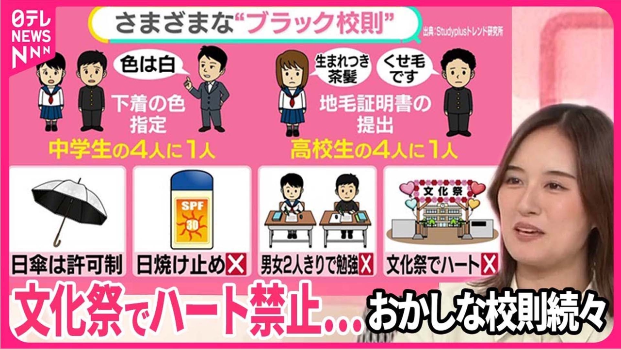 新年度を迎え、学校で定められた校則に戸惑う親子がいます。宮崎県の中学生の母親は、下着の色まで指定される校則に恐怖心を覚えました。専門家は、下着のチェックが性犯罪にあたる可能性も指摘します。いまだにあるブラック校則の中身と対策を考えます。 (2024年4月18日放送「news every.」より)