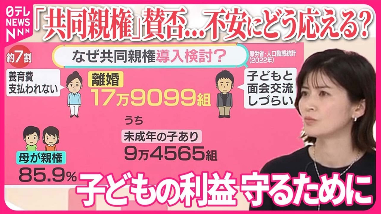 離婚後の共同親権をめぐる民法の改正案が、今国会で成立する見通しです。現状では養育費の不払いや面会交流の難しさなどの問題があり、子どもの利益のために共同親権を導入します。ただ円満な離婚ではないケースも多く、根強い不安の声が寄せられています。そこで今回の#みんなのギモンでは、「共同親権 不安にどう応える?」をテーマに、次の2つのポイントを中心に解説します。 (2024年4月17日放送「news every.」より)