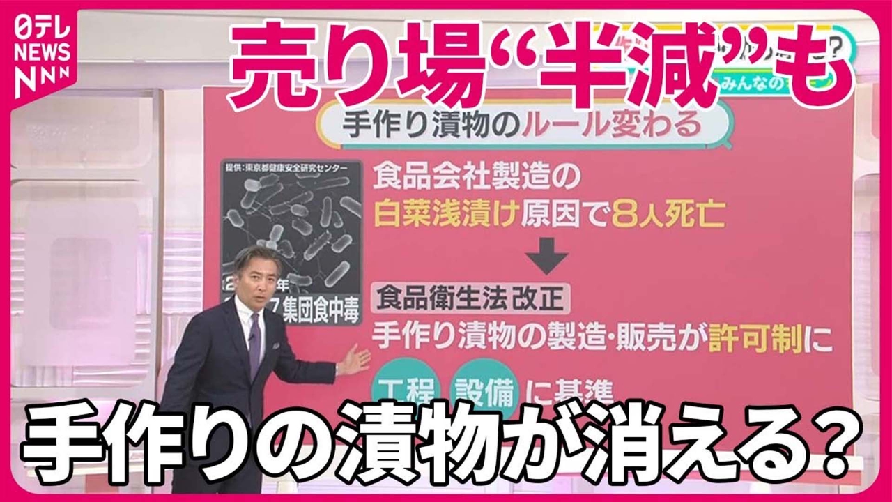 私たちの食卓を彩り、地域の食文化でもある手作りの漬物が消えるピンチに陥っています。ルールの改正で衛生基準が厳しくなりましたが、その猶予期間の期限が迫り、影響が広がっています。対応には高額な費用がかかるため、支援に乗り出した自治体もあります。 (2024年4月19日放送「news every.」より)