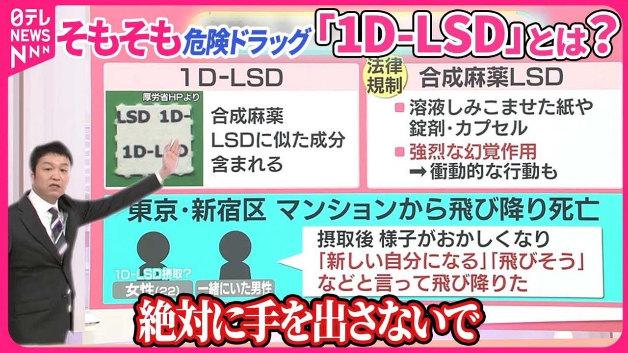 合成麻薬LSDに似た成分が含まれる「1D-LSD」を摂取したとみられる人が、マンションから飛び降りて死亡するケースが相次ぎました。入手するハードルが低く、規制が追いついていません。若者らはなぜ手を出し、どこから購入するのでしょうか。 (2024年4月8日放送「news every.」より)