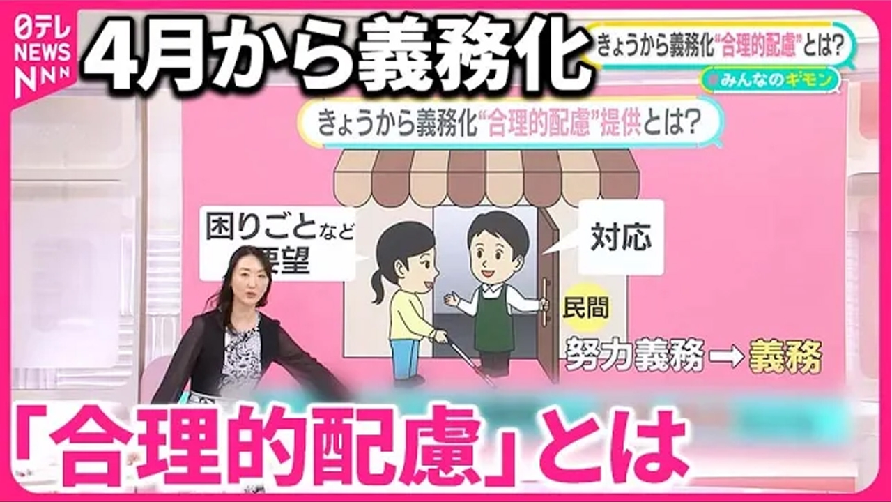 改正された障害者差別解消法が4月1日に施行され、事業者による障害のある人への合理的配慮の提供が義務化されました。従来は「努力義務」でしたが、どこまでどう配慮すべきなのでしょうか? 障害のある人の不便に対応する製品も続々と登場しています。 (2024年4月1日放送「news every.」より)