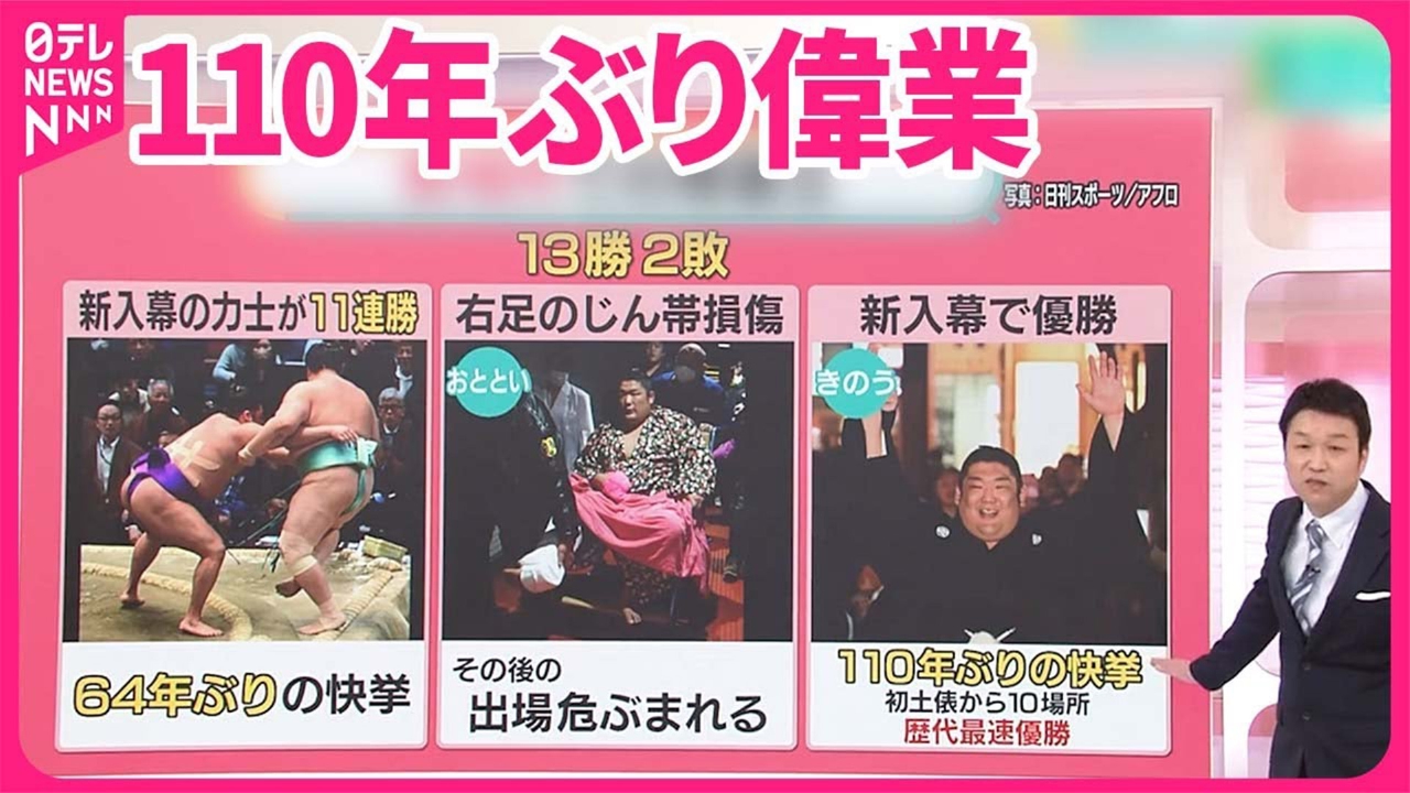 大相撲春場所で尊富士(たけるふじ)が快挙を成し遂げました。新入幕での優勝は110年ぶりで、新入幕で初日から11連勝したのは64年ぶり。初土俵から10場所での優勝は歴代最速です。千秋楽前日に負傷しながら奮起できた裏には、ある言葉がありました。 (2024年3月25日放送「news every.」より)