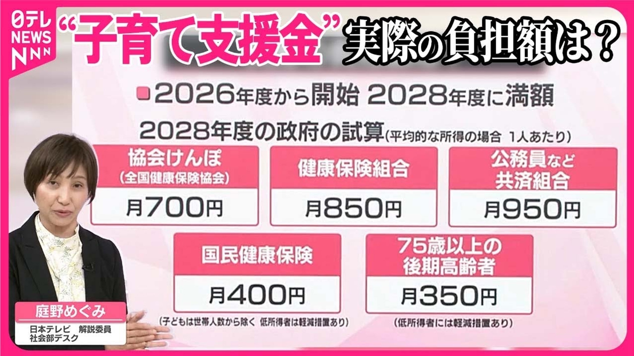 少子化対策のために創設される支援金の国民1人あたりの平均負担額が発表されました。これについて、日本テレビ報道局の庭野めぐみ解説委員が解説します。 (2024年3月29日放送「news every.」より)