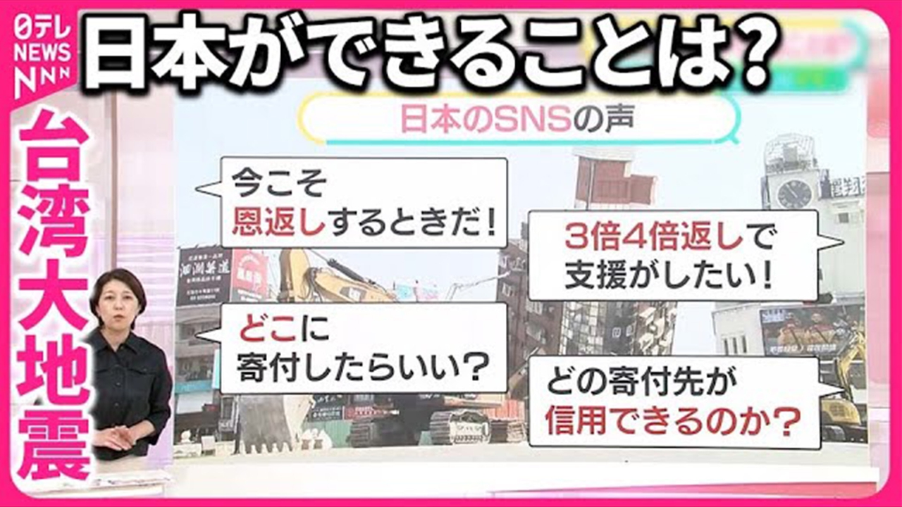 これまで何度も大きな揺れに襲われてきた台湾で3日、過去25年で最大規模とみられる地震が発生しました。東日本大震災や能登半島地震で、台湾から多大な支援を受けた日本。「今こそ恩返しを」という声が上がり、さっそく支援の窓口を開く動きが出ています。 (2024年4月4日放送「news every.」より)