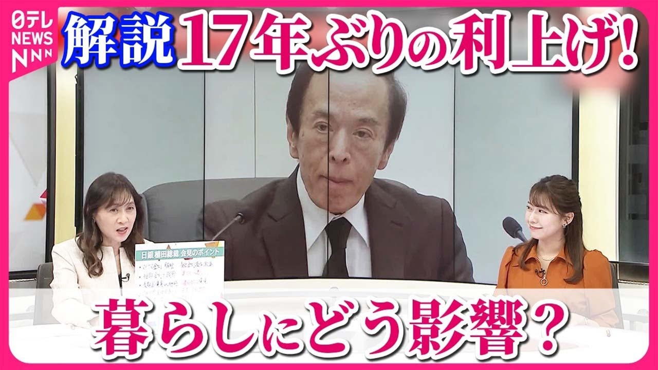 日銀は金融政策決定会合でマイナス金利政策の解除を決定、実に17年ぶりの利上げに踏み切った。“金利のある世界”で暮らしはどう変わるのか?また、今後の金融政策は?経済部・宮島香澄解説委員が植田総裁の会見などから詳しく解説する。 (2024年3月19日放送)