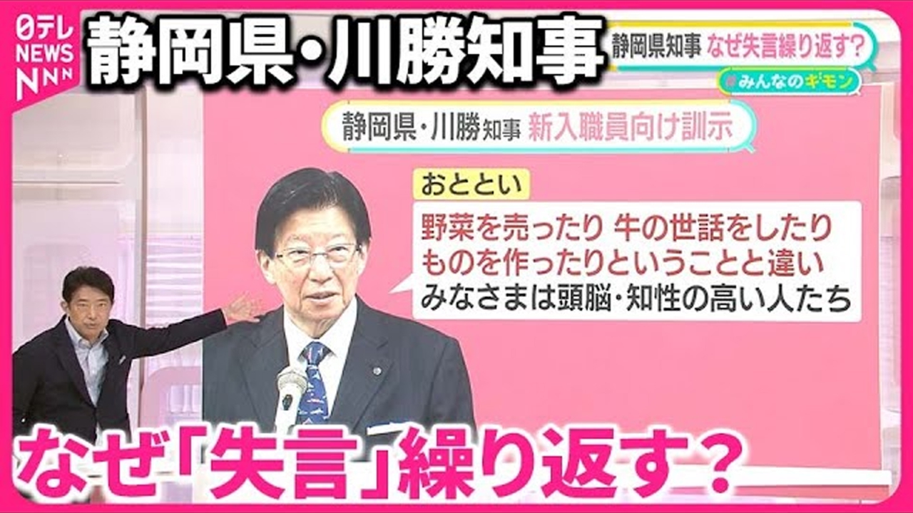 辞職の意向を突然示した、静岡県の川勝平太知事(75)。きっかけは1日にあった新入職員向けの訓示でしたが、これまで何度も失言で批判されてきました。現在4期目で、問題はここ数年で起きています。問題発言を繰り返す背景に何があるのでしょうか。 (2024年4月3日放送「news every.」より)