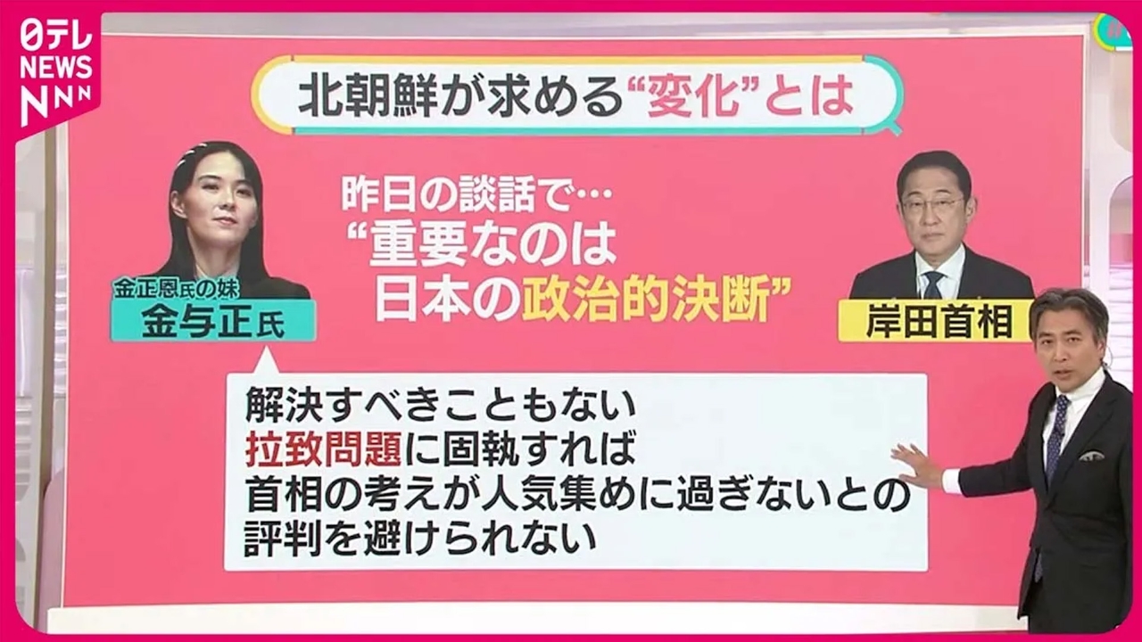 北朝鮮の金正恩総書記の妹・与正(ヨジョン)氏が、相次いで談話を発表。26日の談話は日本との交渉を拒否する強硬な内容でしたが、25日は首脳会談をちらつかせ、日本に変化を求めるものでした。約20年進展のない拉致問題に影響はあるのでしょうか。 (2024年3月26日放送「news every.」より)