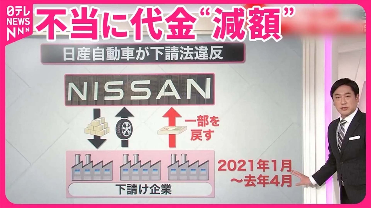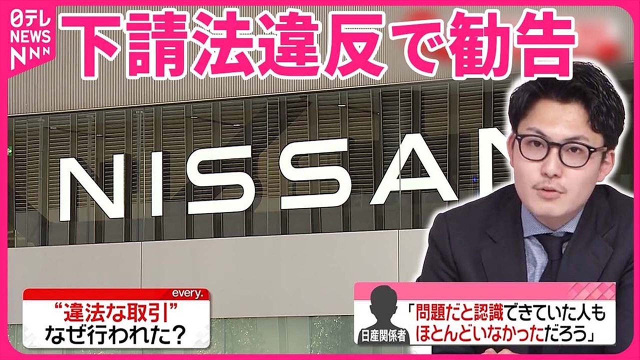 企業の賃上げの動きにも関わってくる大企業の不祥事で新たな動きがありました。日産自動車が、下請け企業に支払う代金を不当に減らしていた問題で、公正取引委員会は日産に再発防止などを勧告しました。不当な減額は総額で30億円以上にのぼり、同様の違反の事案としては過去最大の金額になるといいます。違法な取引が行われていた背景や、その問題点について、経済部・経産省担当の戸田舜介記者が解説します。 (2024年3月7日放送「news every.」より)