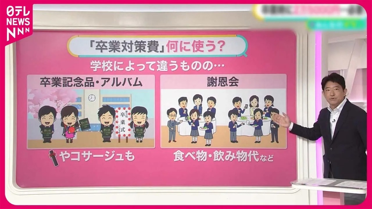 晴れやかに迎えたい卒業シーズンですが、保護者の間で疑問や不満がくすぶる問題があります。卒業にあたって払う「卒業対策費」です。金額の大きさに加え、「勝手に決められている」などとあり方にも異論が出ています。卒業文集の制作をやめる学校もあります。 (2024年3月15日放送 「news every.」より)