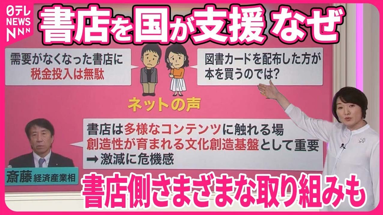 厳しい経営を迫られ、街から消えていく書店。現状に危機感を持った経済産業省が、「書店振興プロジェクトチーム」を立ち上げて支援に乗り出します。電子出版物が増える中、紙やリアル店舗ならではの魅力もあります。書店では多彩な取り組みが始まっています。 (2024年3月6日放送「news every.」より)