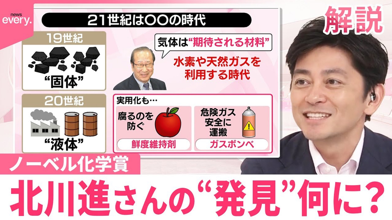 ノーベル化学賞の受賞が決まった京都大学の北川進副学長が一夜明け、会見に臨みました。今回の#みんなのギモンでは、「ノーベル賞 北川進さんの“発見”何に?」をテーマに解説します。 (2025年10月9日放送「news every.」より)