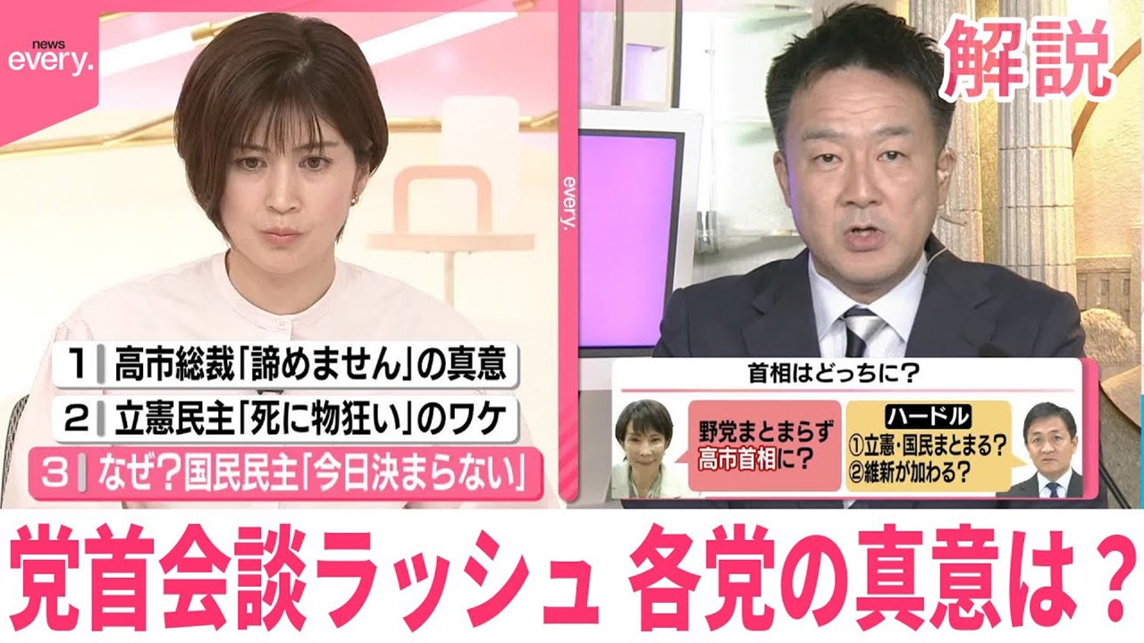 公明党が自民党との連立を解消したことを受け、首相指名選挙はどうなるのでしょうか。日本テレビ政治部の矢岡亮一郎解説委員が解説します。 (2025年10月13日放送「news every.」より)