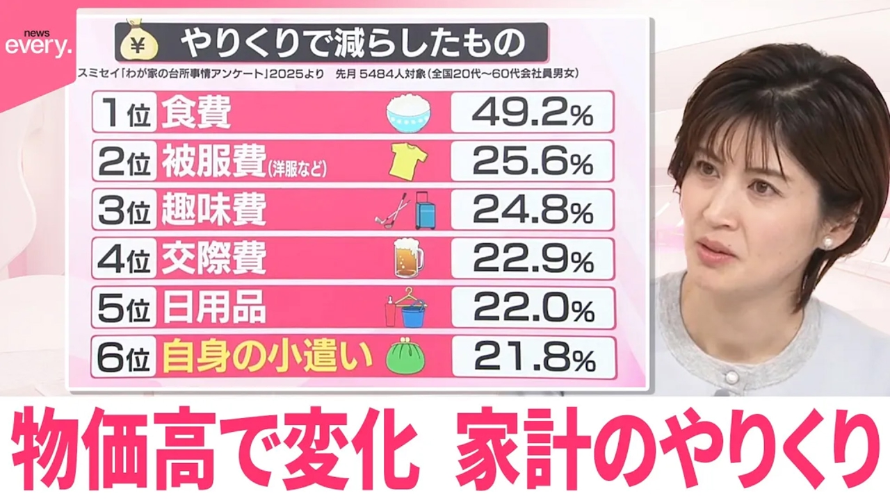 「news every.」の森圭介キャスターが、ニュースの気になる情報をお伝えする「なるほどッ!」。9日のテーマは、「物価高で変化…家計のやりくり」です。 (2025年10月9日放送「news every.」より)