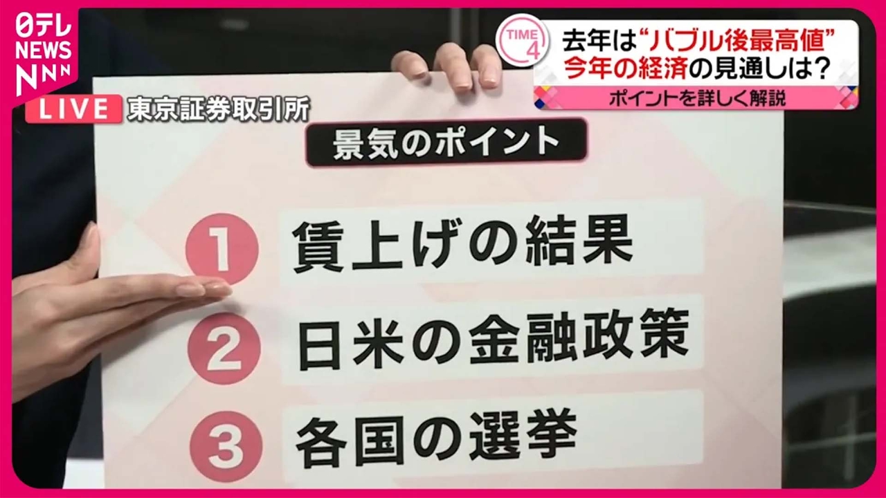 東京証券取引所では4日朝、恒例の「大発会」が行われ、2024年の取引が始まりました。今年の経済の見通しについて、経済部・藤吉有咲記者に聞きます。 (2024年1月4日放送「news every.」より)