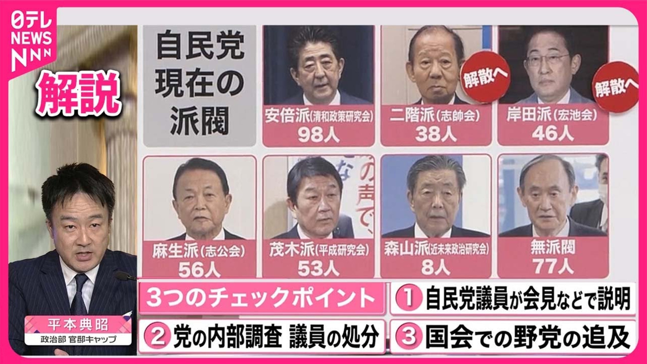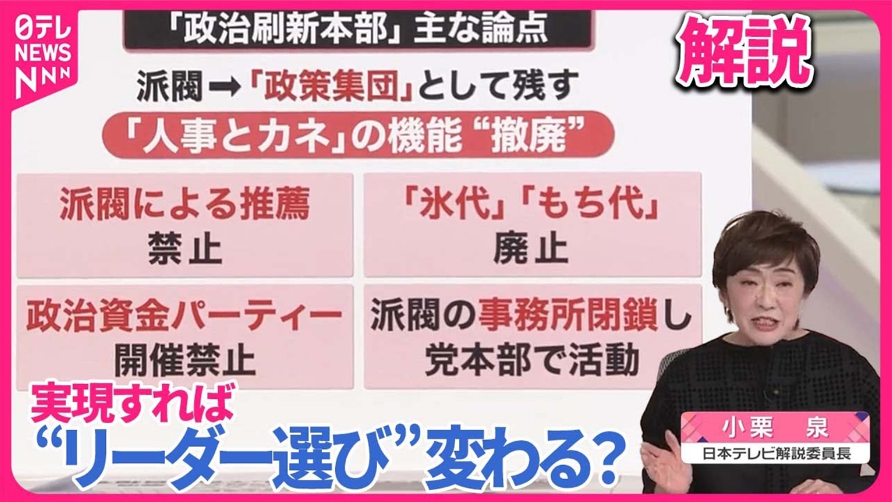 派閥の政治資金パーティーをめぐる事件を受け、自民党は23日、「政治刷新本部」を開いています。議論されているのは、派閥の全面解消までは踏み込まず「政策集団」として残すことを認める案です。主な論点などについて、小栗泉・日本テレビ解説委員長とお伝えします。(2024年1月23日放送「news every.」より)