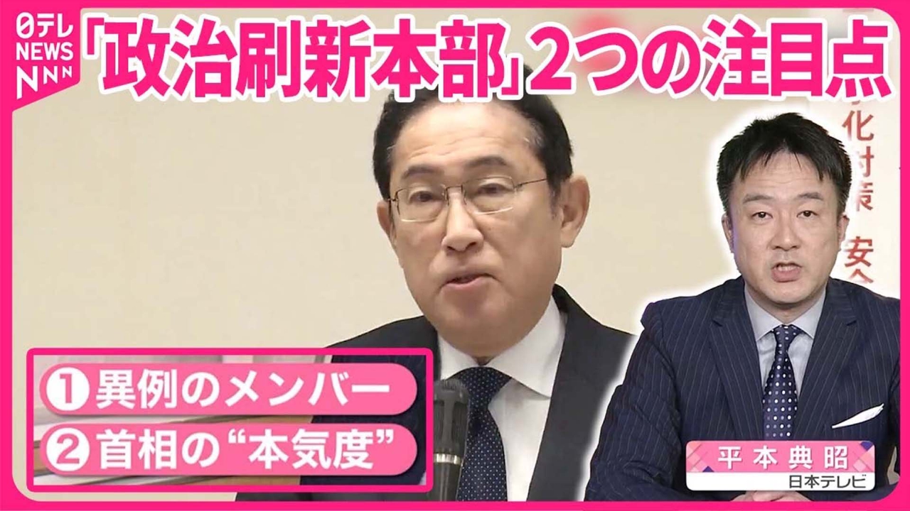 派閥の政治資金をめぐる事件を受け、自民党は11日、「政治刷新本部」の初会合を開きました。 この「政治刷新本部」の注目点について、政治部官邸キャップの平本典昭記者が解説します。 ■注目点① “水と油”の2人…異例のメンバー ■注目点② 岸田首相の“本気度”は? ■解決策は…“派閥解消”どうなる (2024年1月11日放送「news every.」より)