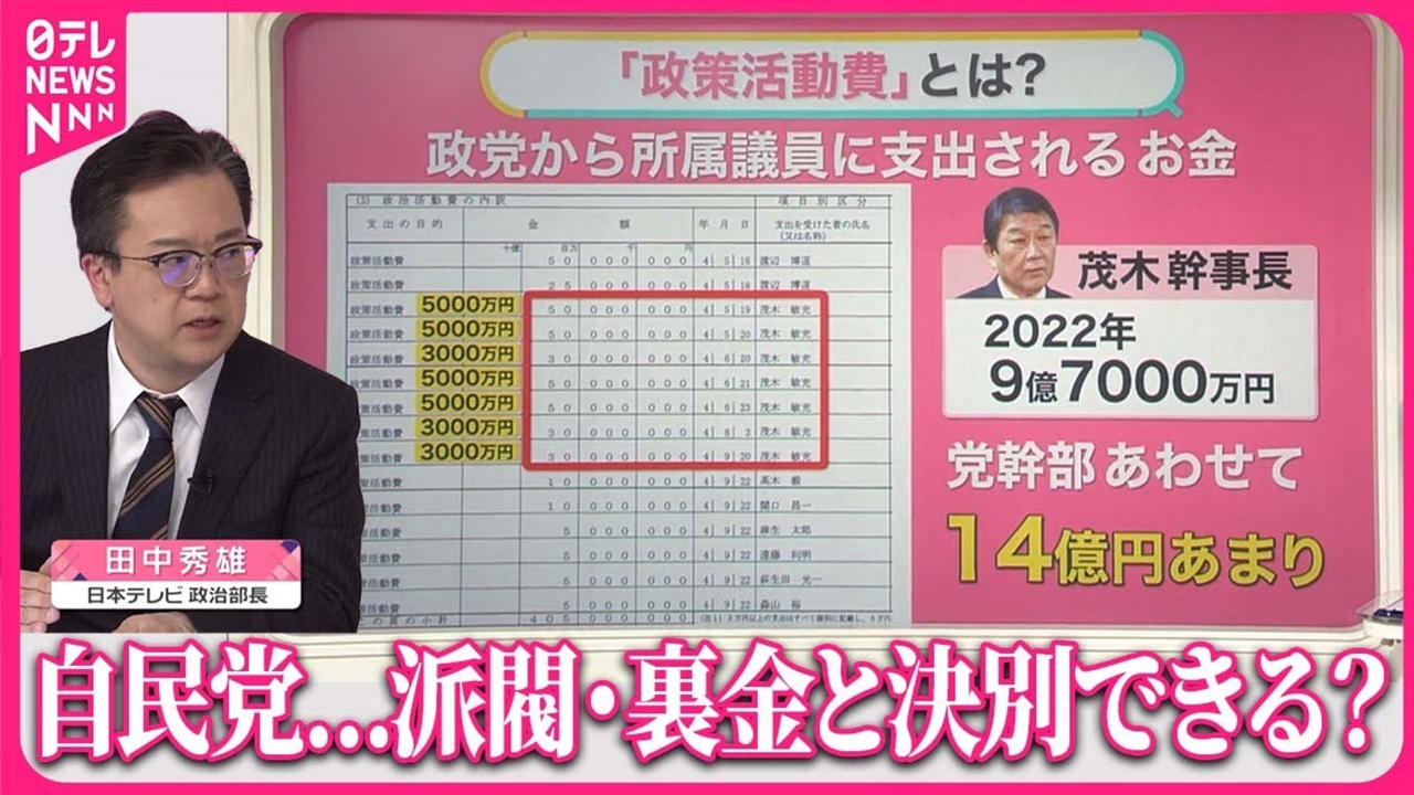 自民党は、25日の総務会で「中間とりまとめ」を正式に決定しました。果たして「政治とカネ」の問題は、根絶できるのでしょうか? 日本テレビ政治部の田中秀雄部長にギモンをぶつけ、話を聞きます。 (2024年1月25日放送「news every.」より)