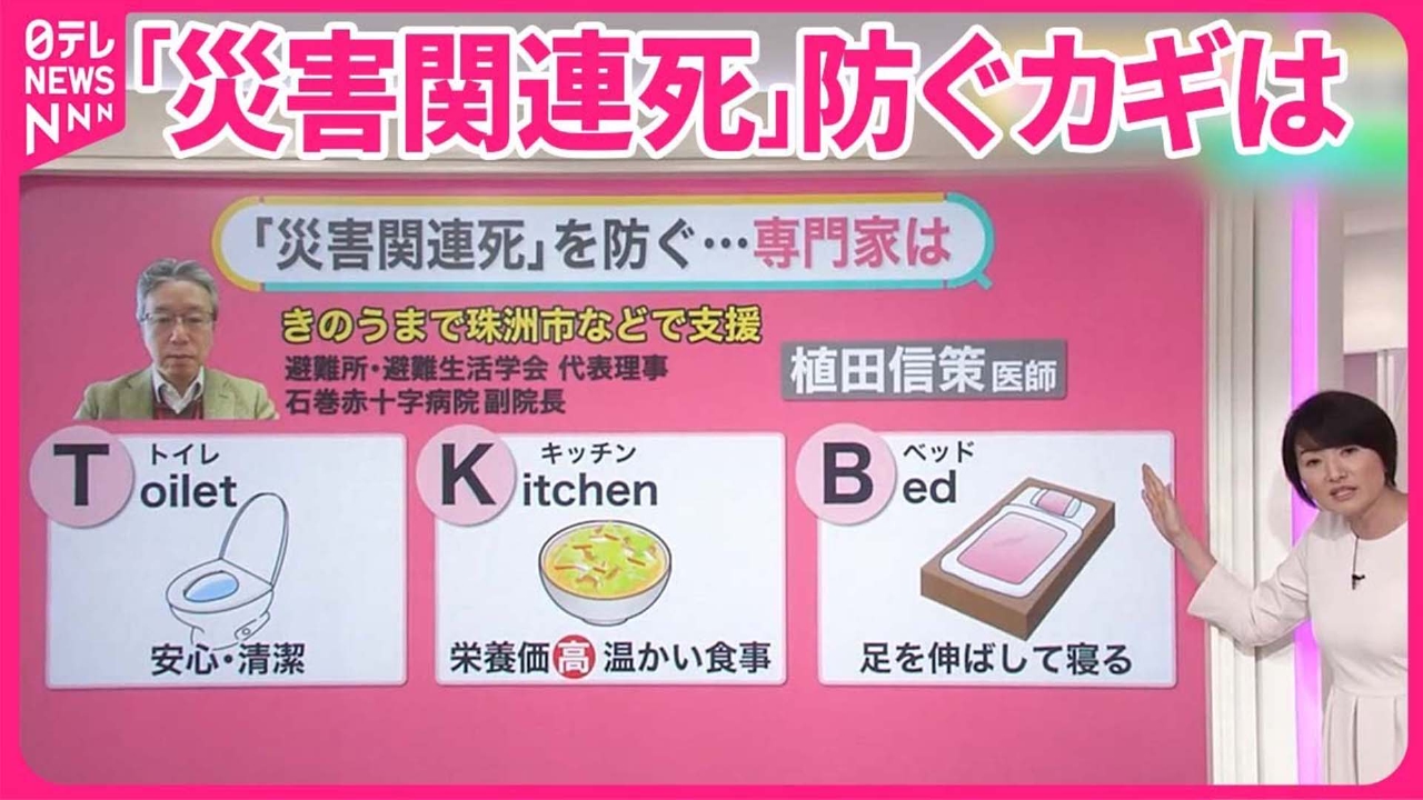 「災害関連死防ぐには?」がテーマです。 今回の能登半島地震で9日、初めて「災害関連死」が確認されました。「災害関連死」を防ぐためにはどうしたらいいのか、次の2つのポイントを中心に詳しく解説します。 ●災害関連死とは ●急がれる2次避難 (2024年1月10日放送「news every.」より)