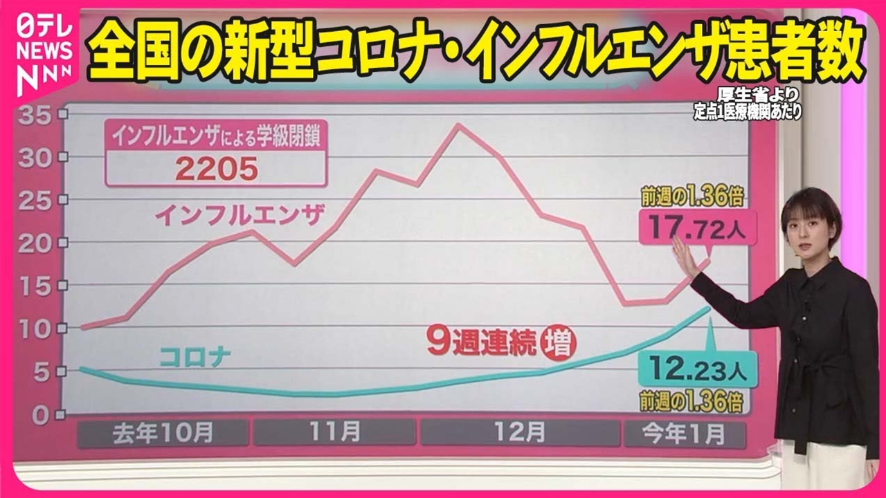新型コロナとインフルエンザの患者数が、どちらも増加しています。そこで、31日の#みんなのギモンは「コロナとインフル同時流行?」をテーマに、次の2つのポイントを中心に詳しく解説します。 (2024年1月31日放送「news every.」より)