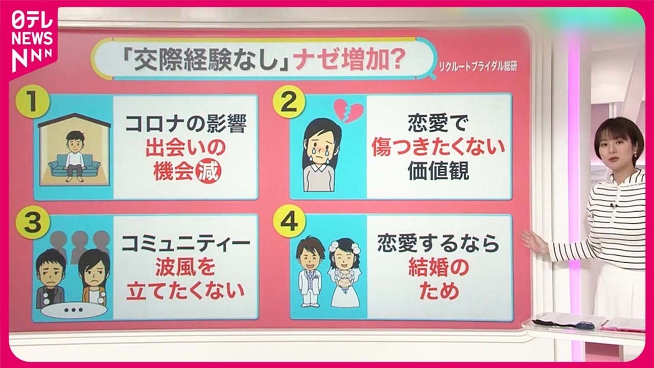 いま「一度もお付き合いをしたことがない」という人が増えているという調査結果が出ました。 (2023年12月13日放送「news every.」より)