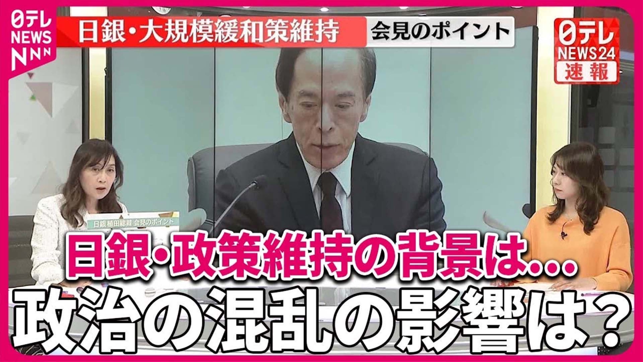 日銀は金融政策決定会合で、現在の大規模な金融緩和政策の維持を決めた。マイナス金利解除はいつになるのか。政治混乱の影響は?(2023年12月19日放送)