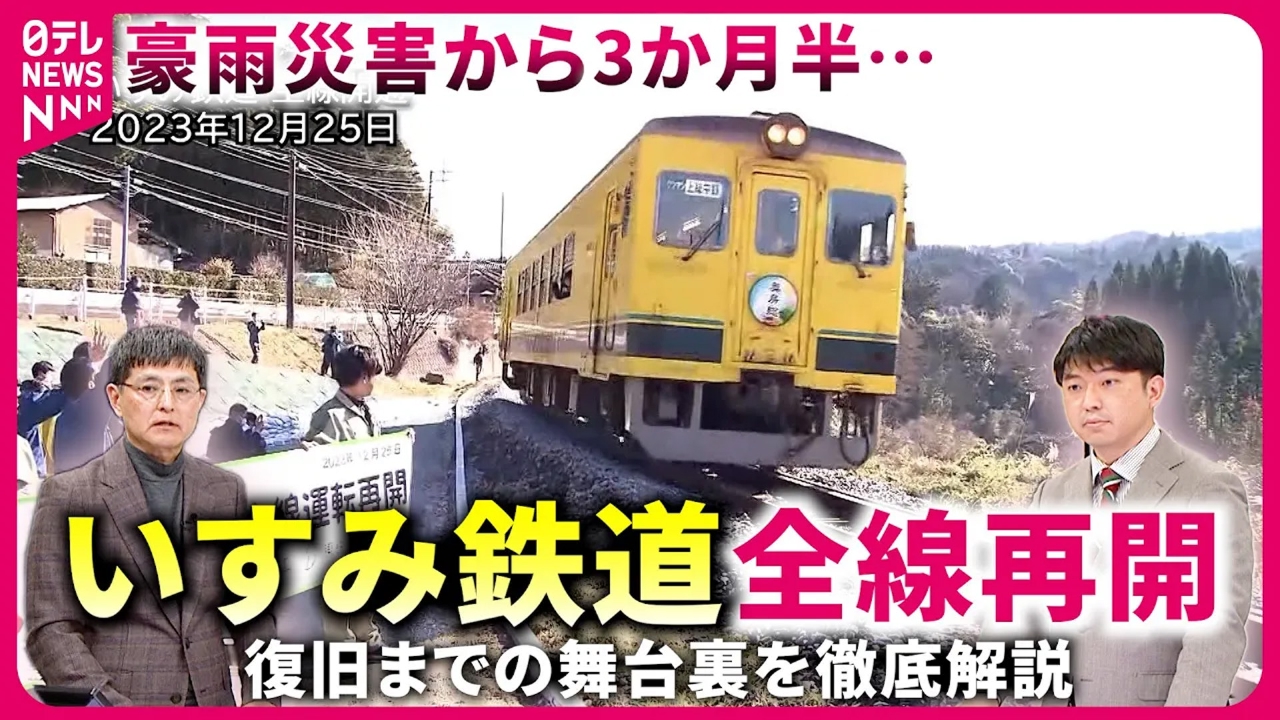 ローカル鉄道のあり方を考えるシリーズ「鉄道再考」。今回は、約3か月半ぶりに、きょう全線再開を果たした千葉・いすみ鉄道がテーマ。大規模な土砂流出から復旧に大きな役割を果たした「鉄道災害調査隊」とは?日常的に技術者不足という苦しい事情を抱えるローカル鉄道にとって、「鉄道災害調査隊」が心強い存在となり得るのか、じっくり掘り下げます。 (2023年12月25日放送)