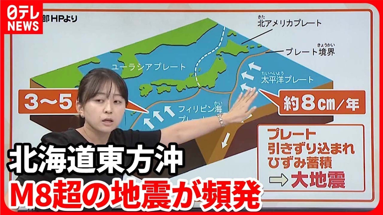 約30年前の1994年10月4日、北海道東方沖でM8.2の巨大地震が発生。2m近い津波も観測されました。この震源域周辺では、過去にM7以上の地震が相次いで発生しています。相次ぐ巨大地震には、海のプレートの沈み込むスピードに関係があるようです。社会部災害担当・内藤ミカ記者が解説します【週刊地震ニュース】 (2023年10月2日放送)