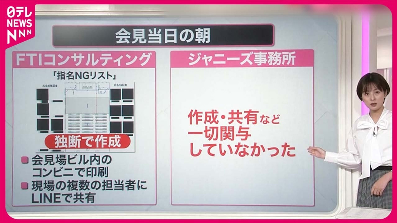 10月2日に行われたジャニーズ事務所の記者会見で、顔写真入りの「指名NG記者リスト」が作成されていた問題で、ジャニーズ事務所が調査結果を報告しました。ポイントは「NGリスト作成の経緯」「ジャニーズ事務所の関与」「NG記者の“排除”はあったのかどうか」の3つです。 (2023年10月11日放送「news every.」より)