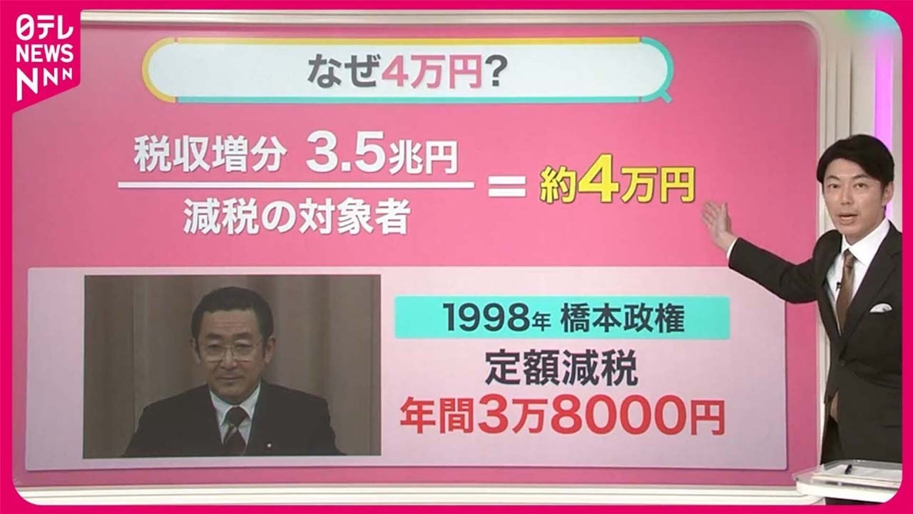 政府が期限付きで“4万円”の減税を検討しているという話。唐突に浮上してきた感があります。ギモンだらけの内容を、こちらのポイントを中心に一つ一つ解いていきます。 (2023年10月25日「news every.」より)