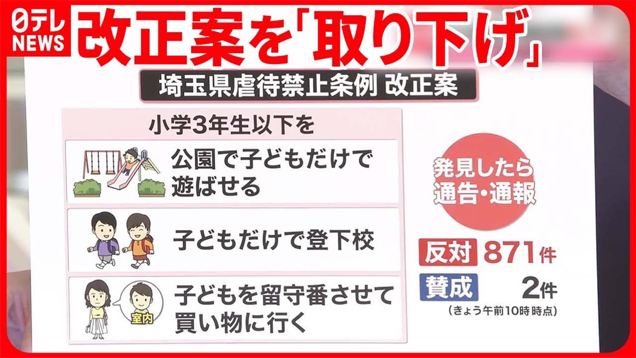 子どもを留守番させて買い物に行くなどの行為を「虐待」と定義し、埼玉県議会で審議されていた「虐待禁止条例 改正案」について、提出した自民党県議団は10日、取り下げることを明らかにしました。どんな点が問題だったのか、加納美也子解説委員が解説します。 (2023年10月10日放送「news every.」より)