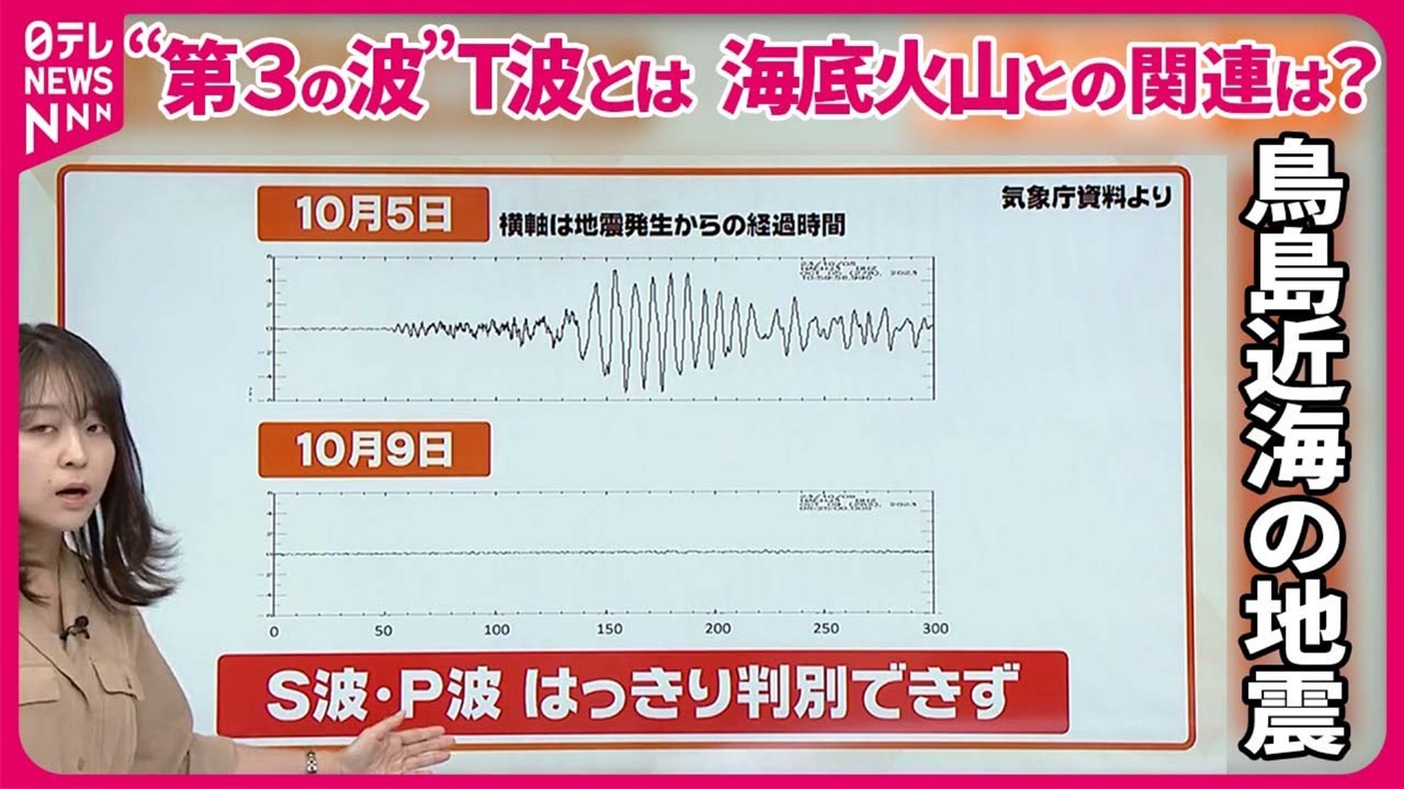 今月9日、太平洋沿岸で津波が観測された伊豆諸島・鳥島近海を震源とする地震。地震波を分析したところ「P波」と「S波」が、はっきりと判別できない一方で、「T波」という“第三の波”が観測されていました。 (2023年10月16日放送)