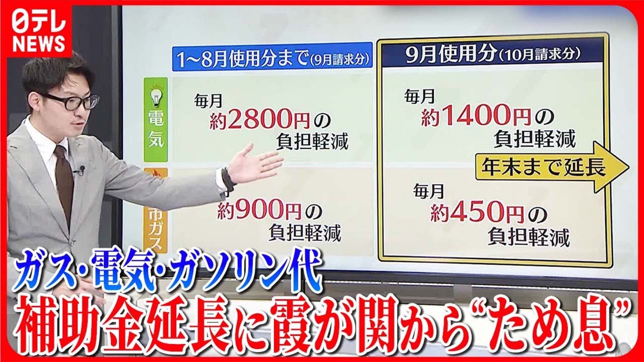 高値が続く電気・ガス・ガソリン代。“今月末まで”とされていた政府の支援策は、いずれも“年末まで”延長されることに。家庭にとっては嬉しい支援策ですが、霞が関の官庁から聞こえてくるのは“ため息”。気になるそのワケを、経済部・戸田記者がイチから解説します。 (2023年9月29日放送)