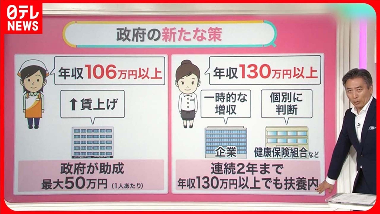 扶養の範囲を超えないように働く、いわゆる「年収の壁」の問題で、政府は「連続2年まで扶養のままにする」という案を検討していることがわかりました。 (2023年9月25日放送「news every.」より)