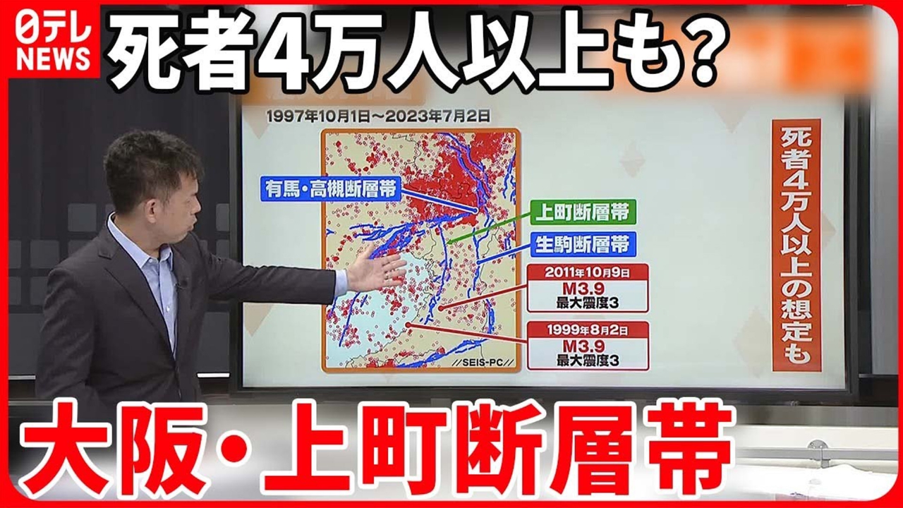 全国に約30ある「Sランク活断層」、その1つが大阪直下にあります。国の想定では最悪の場合、死者4万人以上、阪神・淡路大震災を上回る甚大な被害になります。周辺の地震活動は?社会部災害担当・中濱弘道デスクが解説します【週刊地震ニュース】 (2023年7月3日放送)