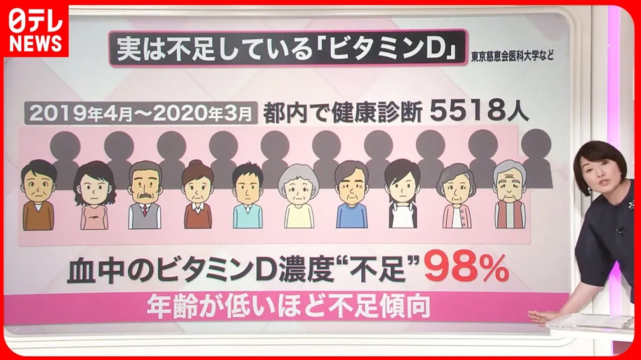 都内で健康診断を受けた人の98%が、ビタミンD不足だったとの調査結果が発表されました。ビタミンDとはどんな働きをする栄養素で、何でとったら効果的なのでしょうか。 ◇骨折などリスク“高”のおそれ ◇ビタミンDが豊富な食べ物は ◇日焼け止めが妨げに? 以上の3点について詳しくお伝えします。 (2023年6月6日放送「news every.」より)