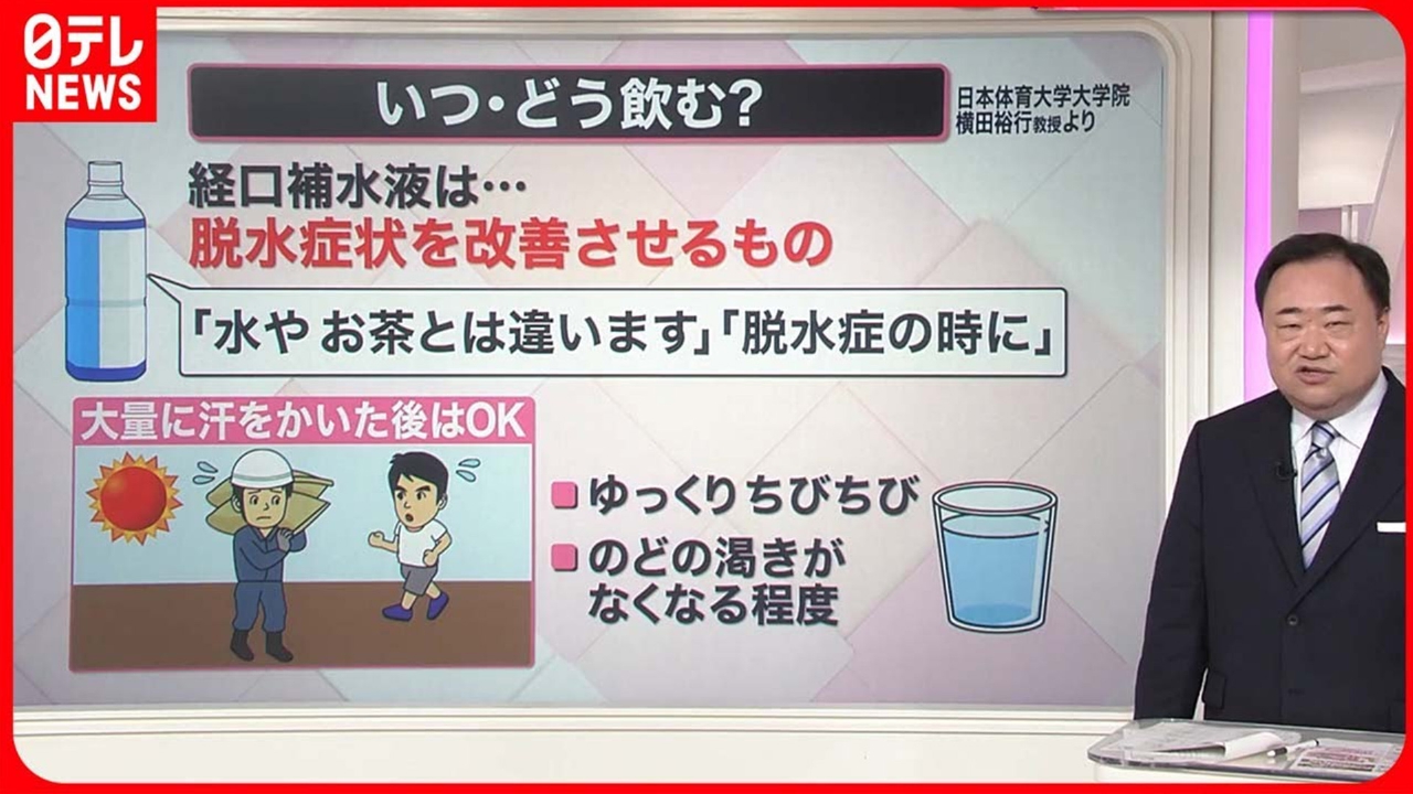 この時期、出勤するだけで汗だくになってしまう人もいるかと思います。この暑さはしばらく続きますので、熱中症対策を見直したいと思います。 ◇経口補水液 飲み方に注意 ◇放置NG! 炎天下で発火 以上の2点について詳しくお伝えします。 (2023年6月29日放送「news every.」より)