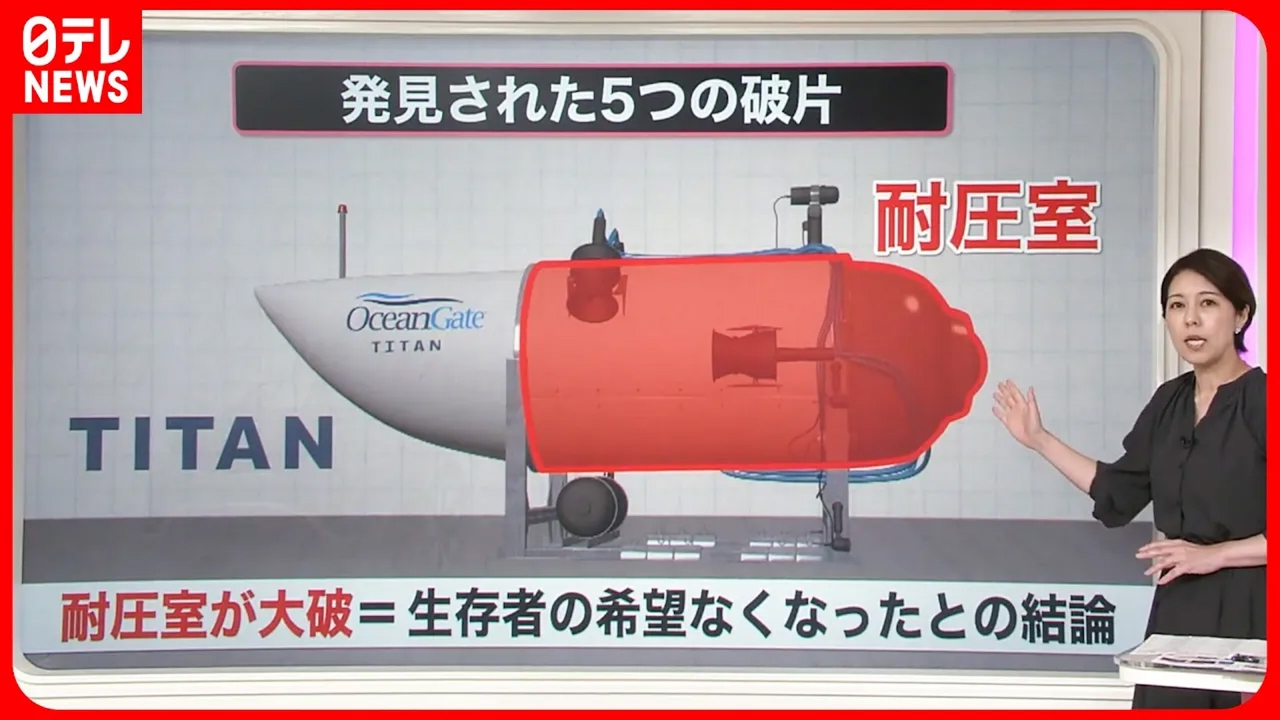海底に沈む豪華客船「タイタニック号」の探索ツアー中に潜水艇が消息を絶ってから、丸4日がたちました。捜索が急展開し、乗っていた5人の生存は絶望的となりました。 ◇4日前に“爆発音”? ◇大破の原因は? 以上の2点について詳しくお伝えします。 (2023年6月23日放送「news every.」より)