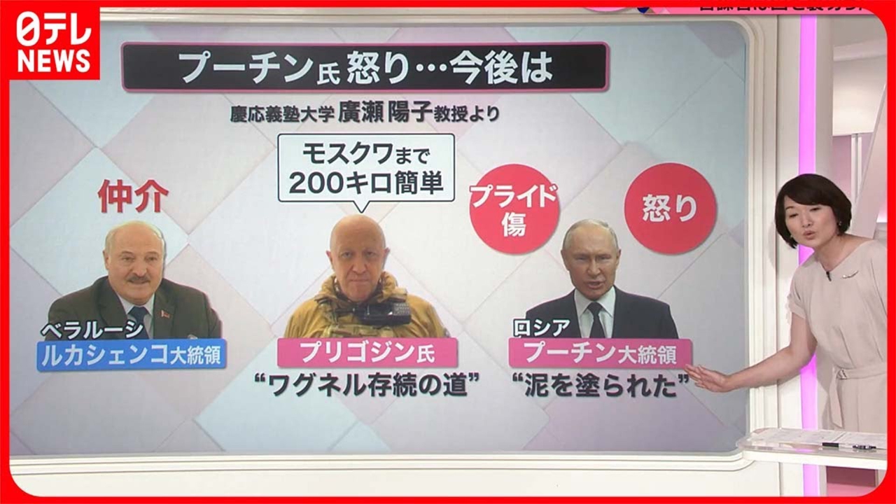 ロシア国内での反乱後に所在がわからなくなっているロシアの民間軍事会社「ワグネル」の創設者プリゴジン氏が、45時間ぶりにメッセージを公開しました。 ●45時間ぶりの「主張」 ●プーチン氏の怒り…今後は 以上のポイントを中心に詳しく解説します。 (2023年6月27日放送「news every.」より)