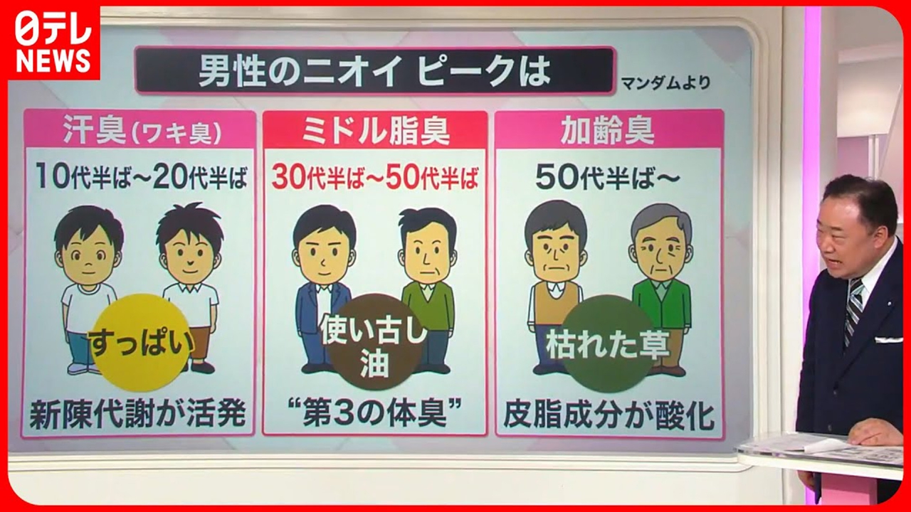 じとっと暑い季節になりました。コロナの制限もなくなりました。人との距離が近づいたことで「ニオイが気になるという声」が増えています。 ◇ミドル世代のニオイ特定 ◇くさい枕はチャンス! ◇ニオイ防ぐには 以上の3点について詳しくお伝えします。 (2023年6月15日放送「news every.」より)