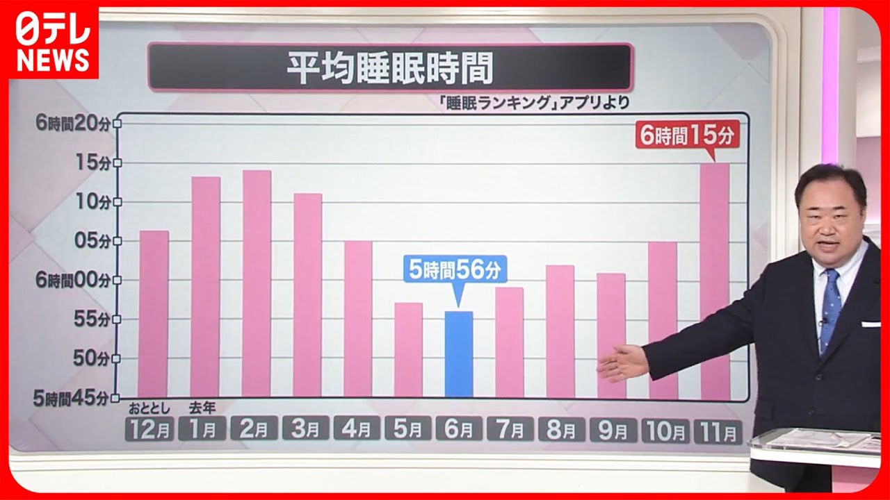 夜中もジメジメした季節が続き、寝苦しいと感じている人も多いのではないでしょうか。 ●今の時期が睡眠“最短” ●寝苦しさ…どう解消? 以上のポイントを中心に詳しく解説します。 (2023年6月22日放送「news every.」より)