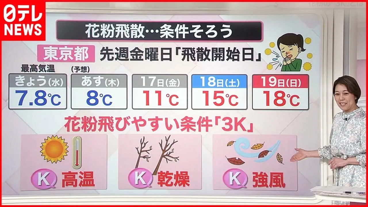 東京では花粉の飛散開始が発表され、花粉症の方にはつらいシーズンがやってきました。さらに、“過去10年で最大レベル”という花粉、これまで花粉症になっていない人も要注意です。 ◇花粉の「3K」とは ◇脱マスクで“発症”? ◇「粉砕花粉」に要注意 以上の3点について詳しくお伝えします。 (2023年2月15日放送「news every.」より)