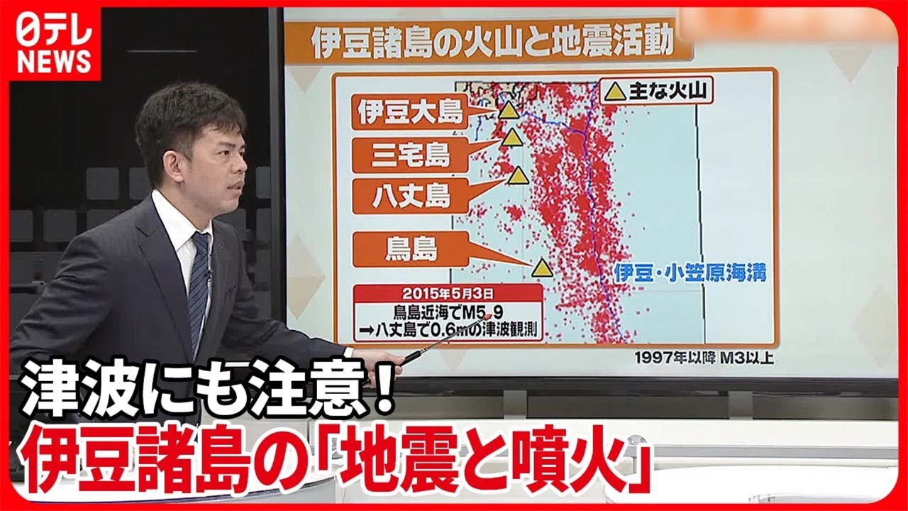 火山島が多い伊豆諸島では、島の周辺を震源とする群発地震が時々おこります。約20年前には群発地震と火山噴火が同時期に発生しました。密接に関わり合う、伊豆諸島の地震活動と火山。時に、地下のマグマが津波を引き起こすことも…。社会部災害担当・中濱弘道デスクが解説します。【週刊地震ニュース】(2023年3月6日放送)