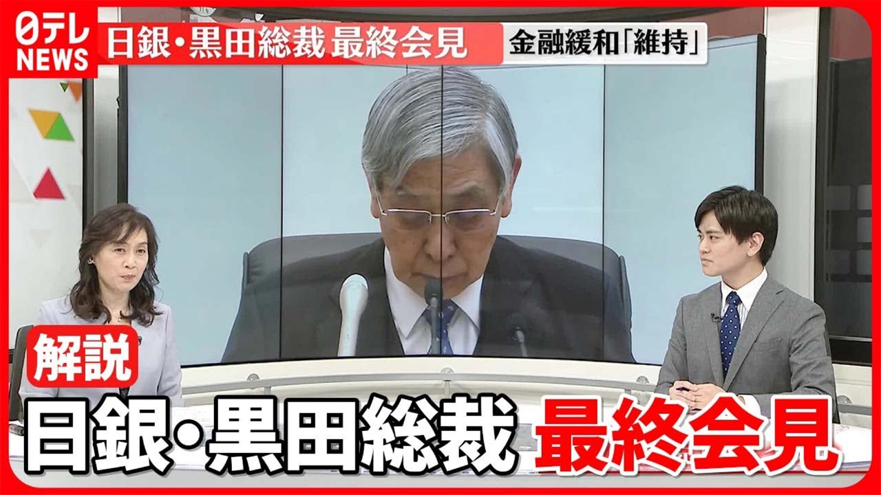 日銀は黒田総裁の下での金融政策で、10年にわたりいわゆる「異次元緩和」を継続。4月に任期満了となる黒田総裁は、最後の会見で何を語ったのか。日本テレビ経済部・宮島香澄解説委員が解説します。(2023年3月10日放送)