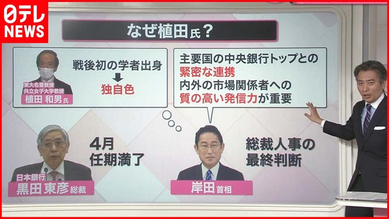 政府は日本銀行の次期総裁人事で、元日銀審議委員で現在は共立女子大教授の植田和男氏を起用する方針を固めました。 日本テレビ経済部の宮島解説委員が解説します。 (※詳しくは動画でご覧ください) (2023年2月10日放送)