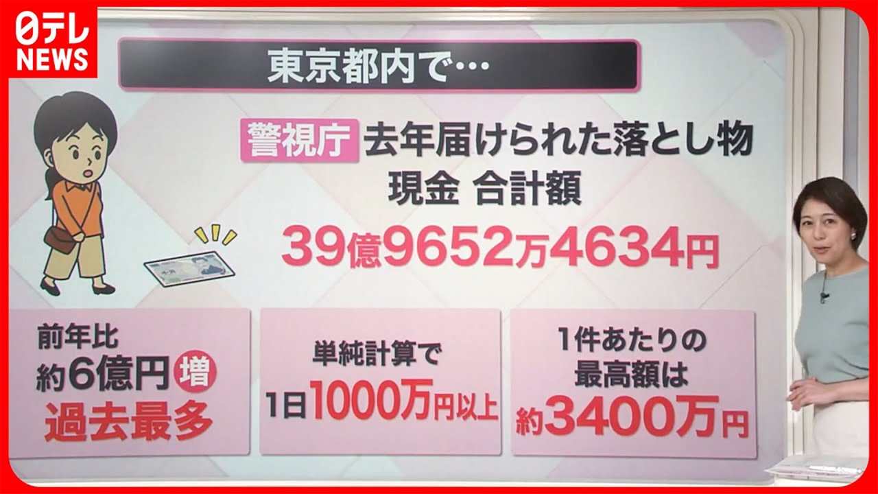 去年1年間の「落とし物」のうち、現金は東京都で約40億円も届けられていたことが分かりました。これは過去最多になります。 ●40億円の行き先は ●現金を拾ったら? ●1000万円に申し出続出 以上のポイントを中心に詳しく解説します。(2023年3月15日放送「news every.」より)