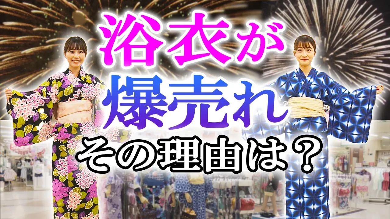この地方では今年は浴衣がとにかく売れていて、在庫切れの店舗もあるといいます。その人気の理由は浴衣の機能が関係しているようです。 夏の風物詩のひとつ「花火」。 この週末も各地で花火大会が開催されます。 夜空を彩る花火、そこへさらに華を添えるとしたら浴衣ではないでしょうか? 「夏本番。浴衣を着て花火なんていいですよね。そんな浴衣に異変が起きています。」(竹田基起アナウンサー) 売り場の担当者に聞いてみると―― 「売れています。」(アピタ岡崎北店 織田光代さん) 「浴衣の異変」、今年はとにかく売れているといいます。 まだ浴衣シーズンは終わっていないというのに、すでに売り上げは去年の3倍以上。 想定以上の売れ行きということで、すでに在庫がない店舗もあり、まさに「爆売れ状態」だといいます。 なぜ今年は浴衣が爆売れしているのでしょうか? 「花火大会の開催が増えている」(アピタ岡崎北店 織田さん) 今年、浴衣が「爆売れ」の理由、それは花火大会の復活が関係しているといいます。 コロナの影響で去年まで、開催を中止していたところもありましたが、今年は各地で大々的に開催されています。それに合わせて、新たに浴衣を買いに来る人が多いんだとか。 同様の理由で名古屋市内の各デパートでも浴衣の売り上げは1.3倍から2倍に伸びていました。 とにかく今年は浴衣が各地で売れていますが、理由は花火大会の復活の他にもあるようです。 関係してくるのは商品の機能。 浴衣4点セット。一見、柄がキレイな普通の浴衣に見えますが、ある機能が隠されていました。 「着ないと分からないです」(アピタ岡崎北店 織田さん) 浴衣を着れば人気の理由が分かるというのですが、女性用の浴衣。 竹田アナウンサーは以前、歌舞伎の取材で女形の着物を着たことがあったので一瞬、「浴衣を着てもいいかなぁ」と考えたのですが、似合う自身がなかったので、助っ人を呼びました。 「新人アナウンサーの尾形杏奈です」(尾形杏奈アナウンサー) 「松崎杏香です」(松崎杏香アナウンサー) 入社1年目、松崎杏香アナウンサーと尾形杏奈アナウンサーの二人に手伝ってもらうことに。 まずは松崎アナウンサーに「着れば機能が分かる」という浴衣を着てもらいました。すると―― 「冷たく感じます」(松崎アナウンサー) 浴衣を羽織ると冷たく感じるとうのです。というのも―― 「ひんやり浴衣です」(アピタ岡崎北店 織田さん) 触れるとひんやり冷たく感じる接触冷感素材を使った浴衣だったんです。 Q.どのあたりが冷たい?(竹田アナウンサー) 「肌に直接触れる部分は冷たく感じる。足とか腕とか。」(松崎アナウンサー) 浴衣はシルエットを美しくするため、おなかにタオルを巻く人が多く、中は熱がこもりやすい。 その状態を少しでも涼しく感じられるよう、接触冷感素材を使っているといいます。 今年、浴衣が人気の理由、続いては「兵児帯(へこおび)」。 兵児帯は生地が柔らかく通常の帯に比べて結びやすい。 子どものころ「私も兵児帯しめたわ」なんて、どこか懐かしさも感じる帯ではないでしょうか? それが今年再注目されているんです。その理由は―― 「兵児帯はアレンジしやすい」(アピタ岡崎北店 青柳真知子さん) 結び目のアレンジが豊富でしかも、簡単にできる、子どもの帯として人気だった兵児帯を今年は大人も購入、ついでに浴衣を新たに買う人も多いといいます。 簡単でかわいい、兵児帯の結び方を教えてもらいました。 「幅があるので、半分に折る」(アピタ岡崎北店 青柳さん) 半分に折った兵児帯はおなか側から巻き付けぐるっと一周させ結びます。そして蝶々結び。 「羽を広げて下ろすだけでかわいい」(アピタ岡崎北店 青柳さん) 帯を背中側に回します。大きな蝶々の羽のような結び目の完成です 「長いのが嫌だったら、結び目のところに下から入れて、流すだけでデザインが変わる」(アピタ岡崎北店 青柳さん) 手順を覚えると結び終わるまで1分もかかりません。 尾形アナウンサーは52秒で結ぶことができました。 Q.へご帯はどうですか?(竹田アナウンサー) 「着崩れても自分で簡単に結び直せそうなので、すごくいいと思います」(尾形アナウンサー) 今週末も各地で花火大会が開始されます。 機能的な浴衣、かわいい兵児帯で花火があがる夜空を見上げるのも良いかもしれません。